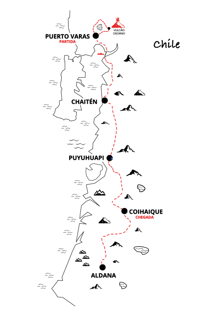 Neste tour você percorrerá uma icônica estrada da América do Sul: a Carretera Austral ! Construída na década de 70, a Carretera Austral tinha como objetivo ligar por via terrestre, os povoados até então isolados do sul do Chile, ao restante do país. Encravada na Cordilheira dos Andes, esta estrada percorre uma das regiões mais lindas e inóspitas da Patagônia. Lagos de cor azul turquesa, rios turbulentos, picos nevados e densas florestas verdes formam o cenário desta aventura! Vamos pilotar por estradas asfaltadas e estradas de rípio (cerca de 1.100 km de ripio), em uma das partes mais preservadas da Patagônia Chilena passando por cidadezinhas pitorescas e por vulcões adormecidos. Para somar a este roteiro incrível ainda teremos a oportunidade de fazer um loop ride até o vulcão Osorno no primeiro dia de viagem. Muita pilotagem, paisagens incríveis, ótima gastronomia e uma experiência incrível sobre duas rodas fazem parte desta viagem! Tour realizado com motos alugadas no Chile.