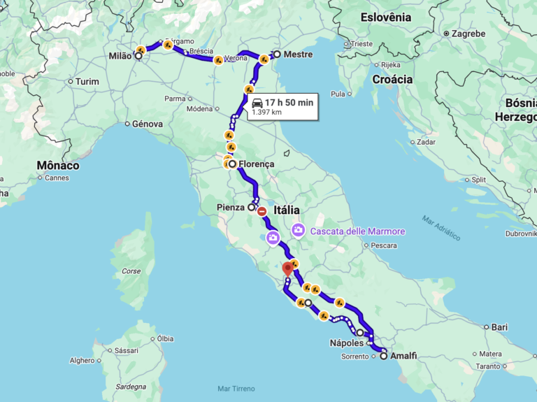 Neste tour vamos pilotar pelas paisagens incríveis da Toscana e pelas curvas da Costa Amalfitana, além de conhecer importantes marcos históricos e culturais como Roma e Veneza! Estrada vicinais, paisagens românticas e lugarejos centenários que ficaram parados no tempo, fazem parte dessa experiência. Essa é uma experiência incrível onde vamos conhecer alguns dos principais pontos turísticos e culturais da Itália. Alta gastronomia, ótimos vinhos, paisagens inesquecíveis, arquitetura e muita cultura fazem parte dessa aventura sobre duas rodas. Uma viagem perfeita para os amantes do mototurismo! Tour realizado com motos alugadas na Itália.