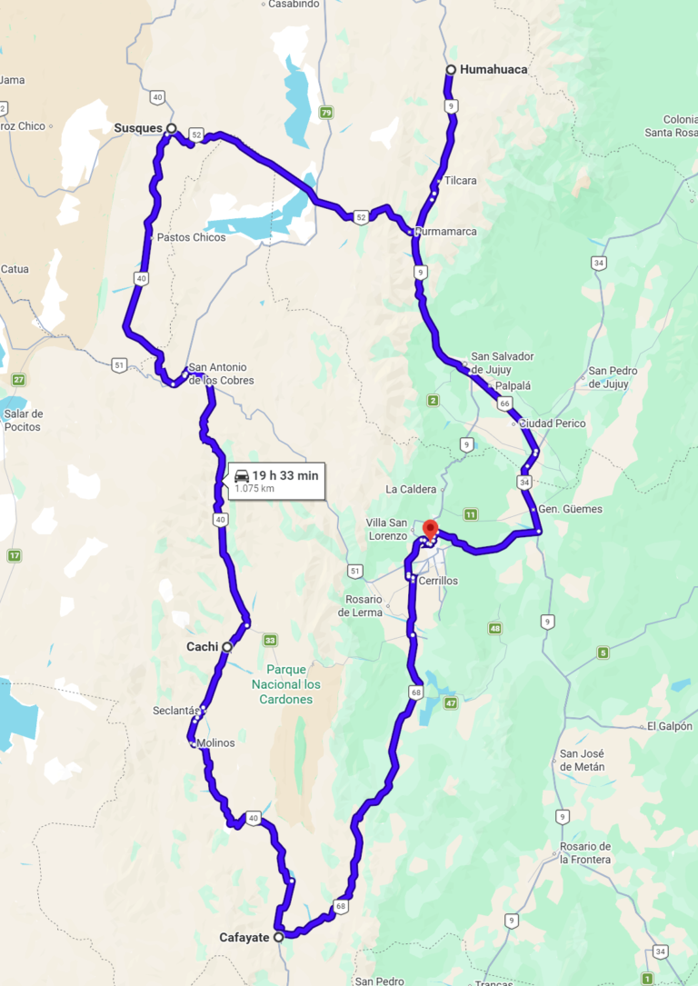 Distância Rota Argentina Saída: Salta, Argentina Chegada: Salta, Argentina