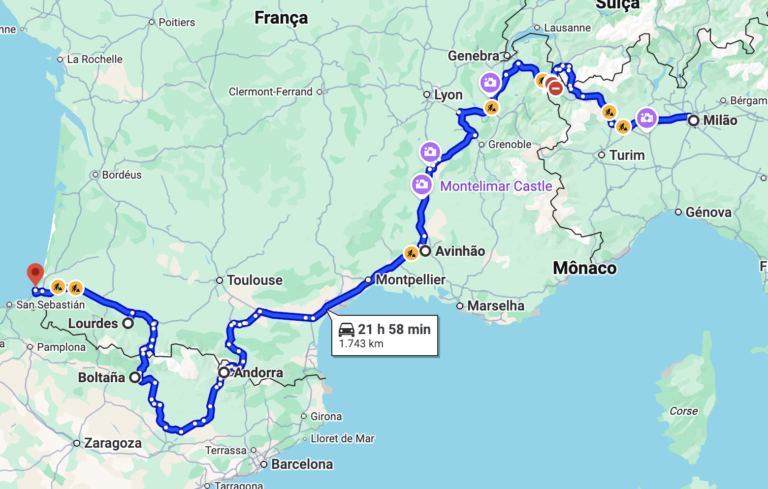 Partindo de Milão, esta jornada leva você por algumas das estradas mais espetaculares da Europa. Logo surgem os Alpes, com suas curvas perfeitas e picos monumentais, até chegar a Chamonix, aos pés do Mont Blanc. A viagem segue rumo ao sul da França, passando por Avinhão, com seu charme histórico e clima provençal, antes de subir novamente para atravessar os imponentes Pirineus rumo a Andorra, um paraíso de montanha entre vales e estradas desafiadoras. Depois de uma pausa em Lourdes, cidade de natureza tranquila e atmosfera acolhedora, começa a descida final até o Atlântico. O destino derradeiro é Biarritz, onde o lendário Wheels and Waves celebra a cultura moto, o surf e a liberdade sobre duas rodas. Um roteiro que conecta duas grandes cadeias de montanhas — Alpes e Pirineus — e termina nas beiras do Atlântico, reunindo aventura, beleza natural e a essência do motociclismo. Tour realizado com motos alugadas na Itália.